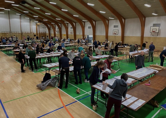 Fintællingen skete fredag den 26. november 2021 i Dybbøl-Hallen, hvor omkring 100 tællere løste opgaven.