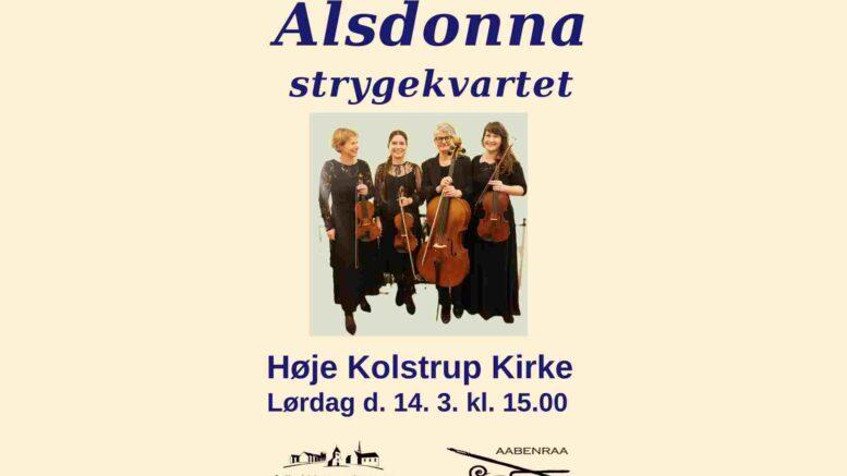 Lørdag den 14. marts kl. 15.00 spiller Alsdonna Strygekvartet i Høje Kolstrup Kirke i Aabenraa.