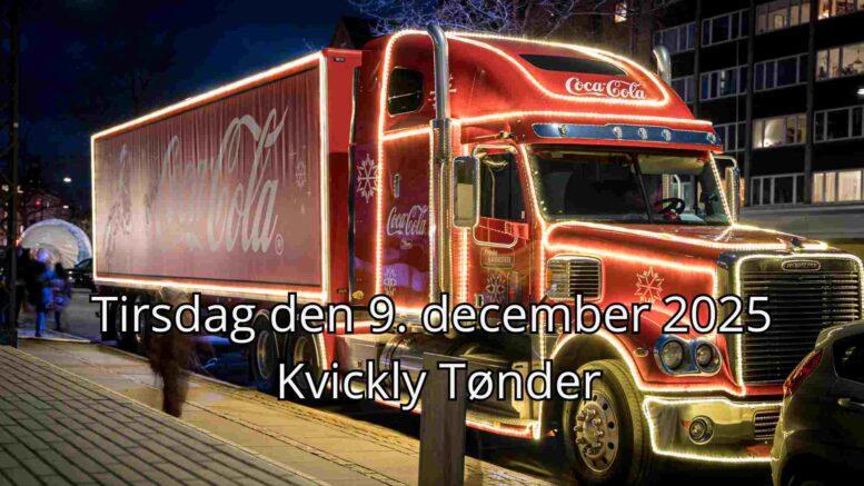 Tirsdag den 9. december 2025 kl. 15-19 er Coca Cola lastbilen hos Kvickly Tønder på Plantagevej.