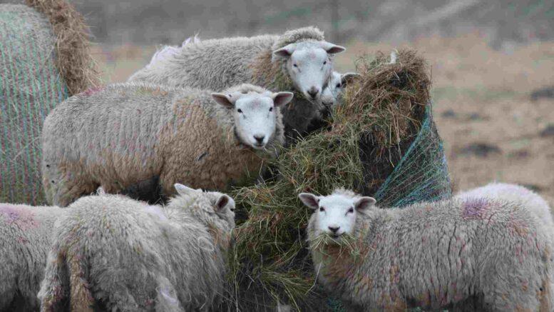 Det generer dog ikke fårene, der hygger sig derude med store baller af hø.