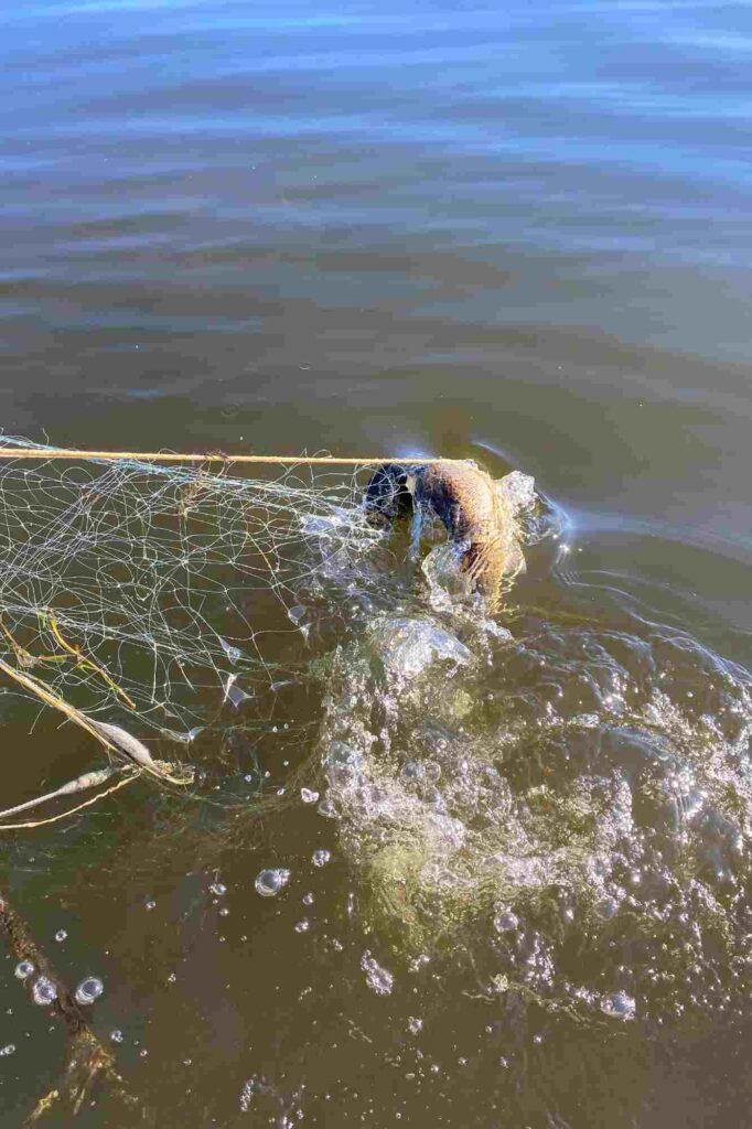 De to nedgarn var hverken mærket eller afmærket i henhold til lovgivningen. Da det også er forbudt at fiske med nedgarn i Grund Fjord, konfiskerede fiskerikontrollørerne redskaberne, efter de var blevet tømt for de ulovligt fangede fisk.