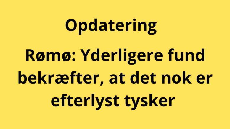 Tæt ved de knogler, der lørdag middag blev fundet på Nørre Frankel nord for Havneby på Rømø, har politiet her til aften fundet genstande, der formentlig tilhører en efterlyst tysk statsborger. Politiet formoder ud fra de foreløbige undersøgelser og de fundne genstande, at det er den efterlyste tyske statsborger, som i dag blev fundet på Rømø. Hans pårørende er derfor underrettet om sagens omstændigheder.