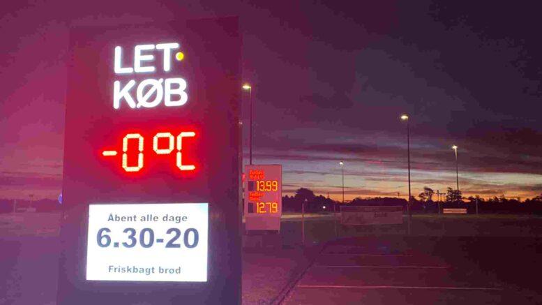Temperaturen i Hellevad klokken 07.00 denne søndag morgen. Foto: Erik Egvad Petersen - www.sydnyt.dk