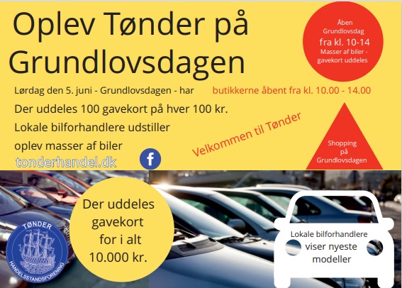 Arrangementer – Lørdag den 5. juni – Grundlovsdagen – holder Tønder åbent. Det er Tønder Handelsstandsforening og medlemmerne, der har valgt at holde åbent på Grundlovsdagen med aktiviteter.
