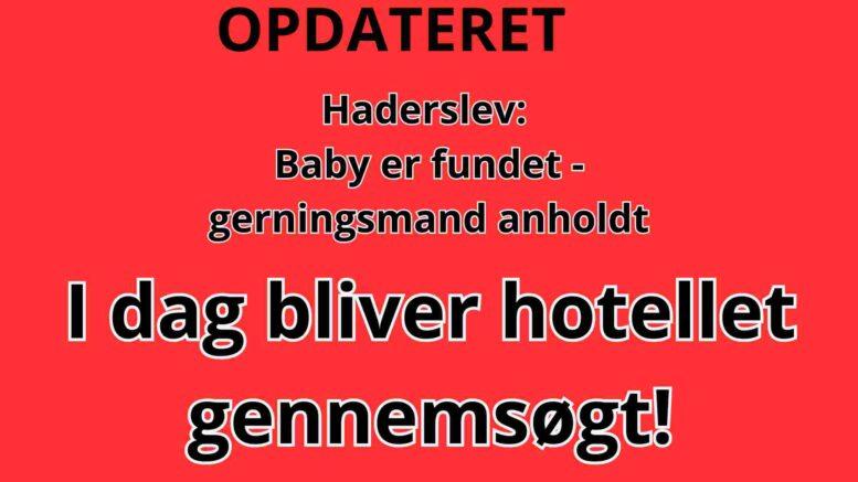I dag er Syd- & Sønderjyllands Politi til stede ved Hotel Norden i Haderslev, hvor politiet mandag aften fandt det syv måneder gamle spædbarn, som tidligere på aftenen var blevet frihedsberøvet. Her fandt politiet også den formodede gerningsmand, som blev anholdt og nu er varetægtsfængslet og sigtet for både frihedsberøvelse og forsøg på voldtægt.