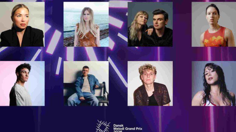 Her er de otte artister, der deltager ved Dansk Melodi Grand Prix 2026, som afholdes den 14. februar i Arena Nord i Frederikshavn – Årets Grand Prix By. Værterne Sara Bro og Alex Høgh Andersen inviterer hele Danmark med til årets store musikfest, hvor musikken, fællesskabet og de mindeværdige øjeblikke er i centrum.