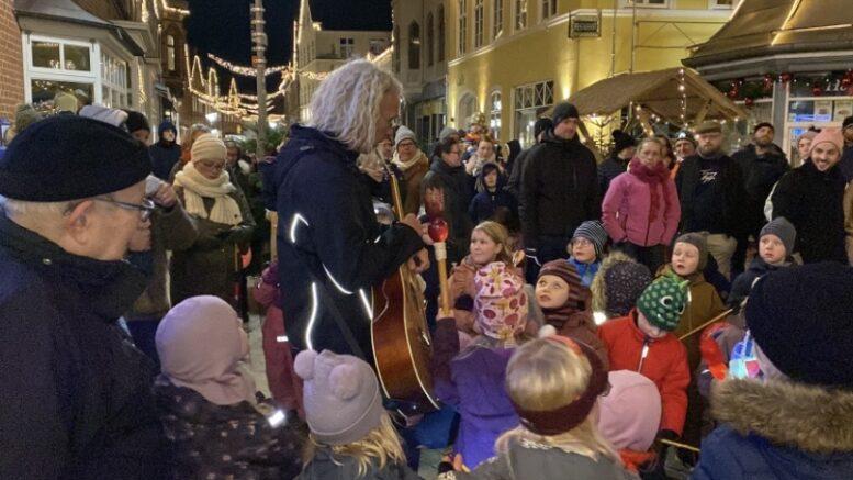 Børnene har laterner med og sammen med forældre, bedsteforældre og andre, går turen op igennem gågaden op til Torvet hvor der er musik og børnene synger med inden turen går videre gennem Tønders flotte juleby.