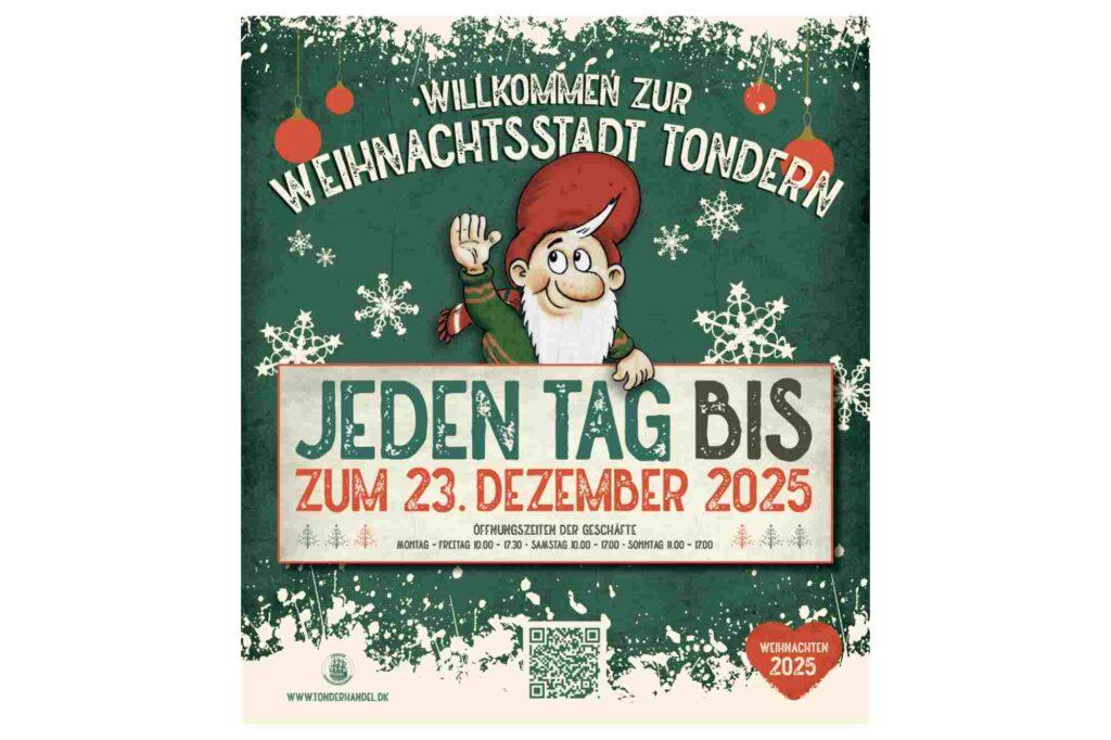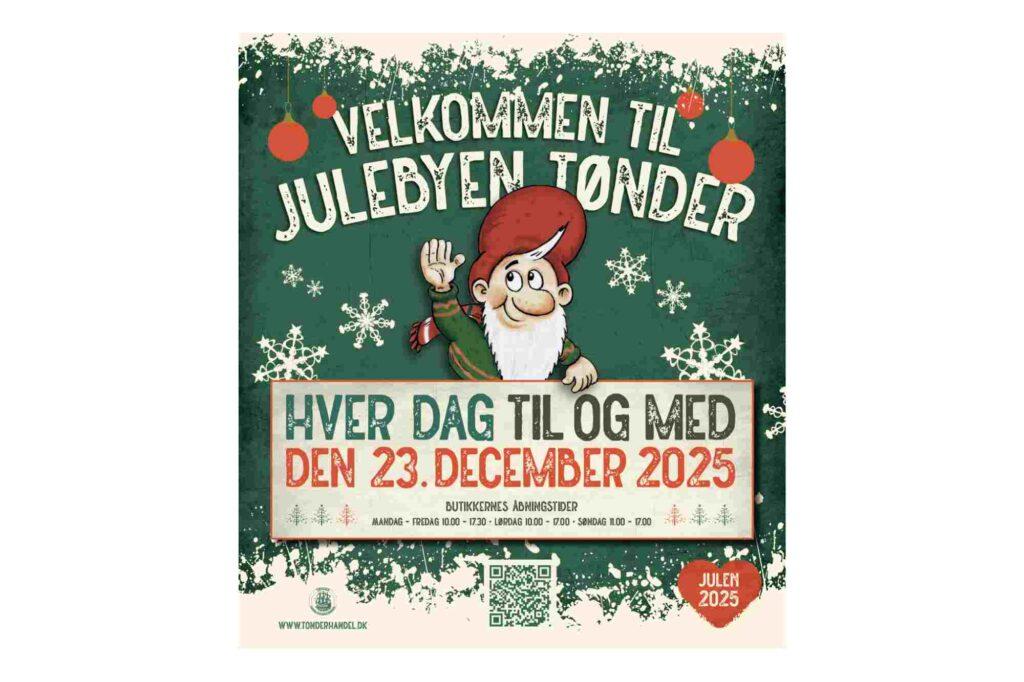 Julebyen Tønder er igen i år pyntet op med gran, juletræer, julehytter på Kirkepladsen og den prægtigste julebelysning, og kan opleves indtil fredag den 23. december 2025.