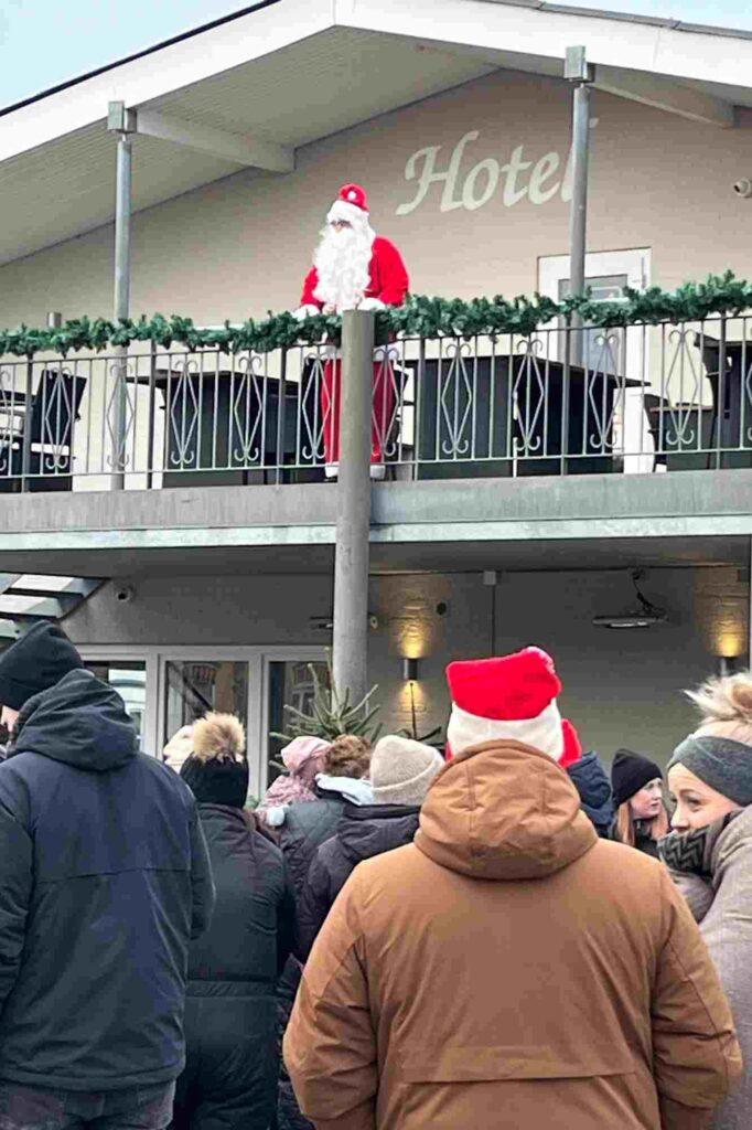 Traditionen tro blev der danset omkring det pyntede juletræ på parkeringspladsen, før alle søgte ind i varmen på Hotel Kløver Es til varme drikke og frisklavede æbleskiver.