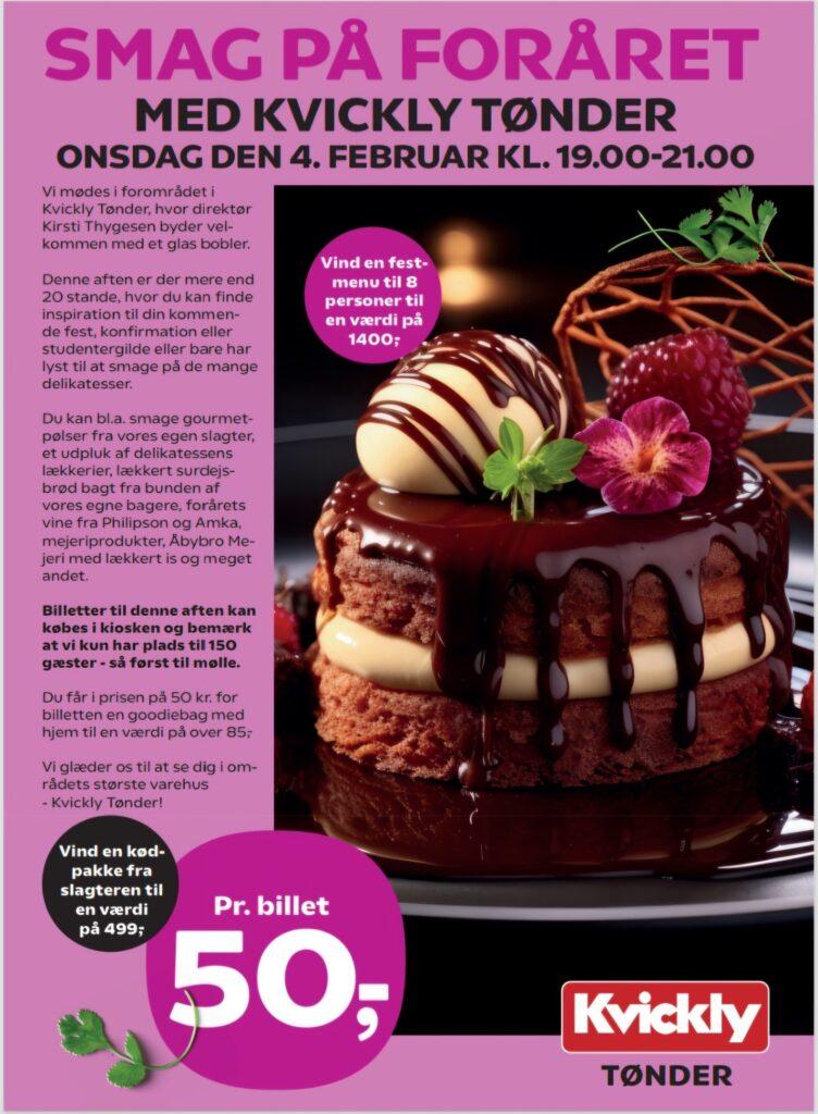 – Smag på foråret hos Kvickly Tønder, lyder det fra bla. slagteren, delikatessen, bageren og vinafdelingen hos Kvickly Tønder på Plantagevej.