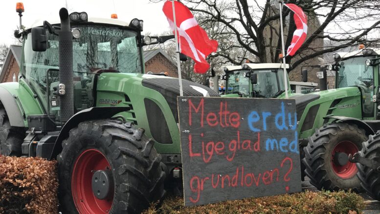 De første traktorer er ankommet på hovedgaden i sønderjyske Agerskov. Det er Agerskovgruppen, der indkaldt til demonstration i dag.