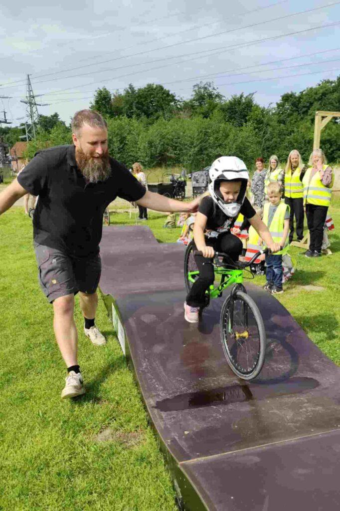 på en rigtig cykel med pedaler. Træning på en pumptrack styrker motorikken og