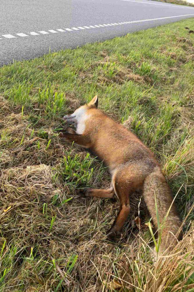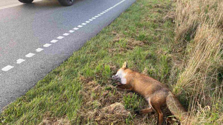 Omkring 20.000 ræve dræbes i trafikken hvert år - denne her ræv blev kørt ihjel i fredags ved Bedsted. Foto: Erik Egvad Petersen - www.sydnyt.dk