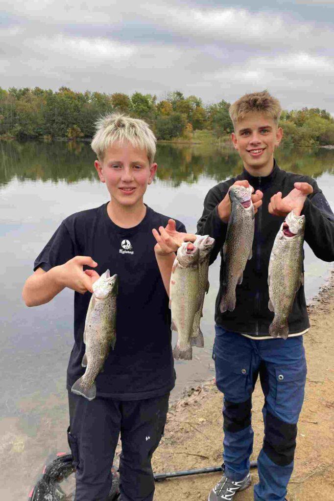 To unge lystfiskere, Oskar og Silas fra hhv. Skærbæk og Løgumkloster havde valgt at bruge et par timer af efterårsferien i Mjøls Lystfiskeri i Rødekro tirsdag eftermiddag.