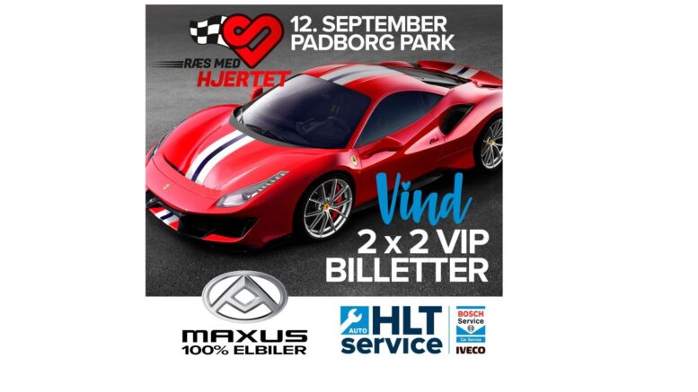 – Vind en kæmpe oplevelse for livet – Ræs Med hjertet, lyder det fra HLT Service. – Selvom vi hos MAXUS 100% elbiler tror på at elbiler er fremtiden, støtter vi og HLT Service gerne op omkring velgørende formål. Du har derfor nu chancen for at vinde 2 VIP billetter til Ræs Med Hjertet. En fed dag på Padborg Park hvor alt overskud går direkte til Julemærkehjemmet Fjordmark.