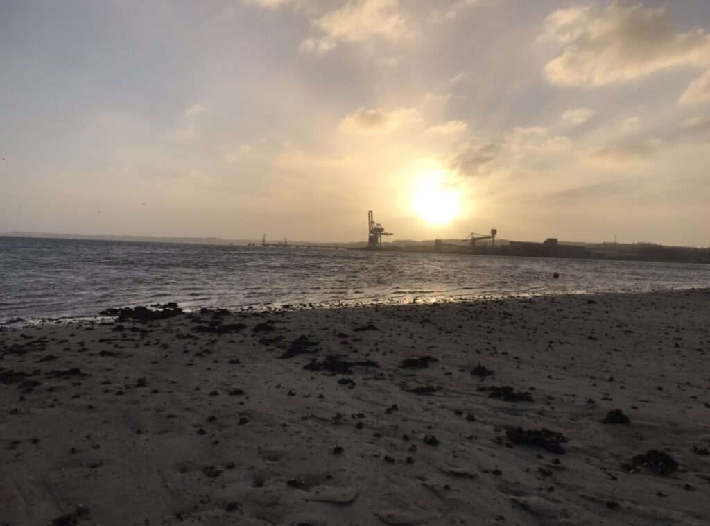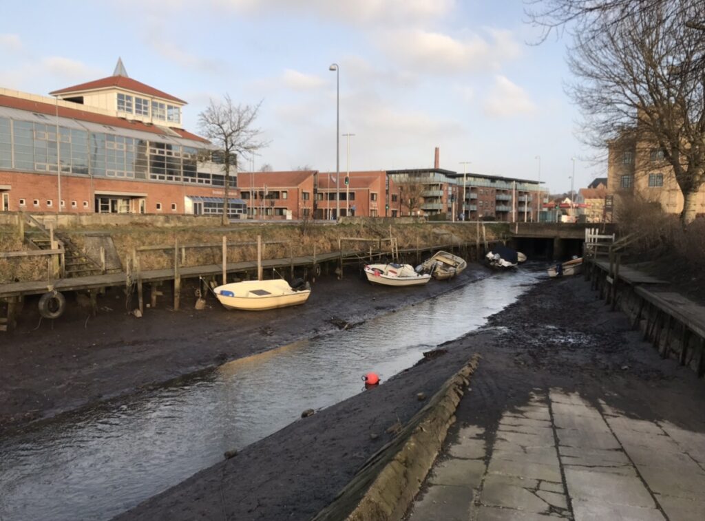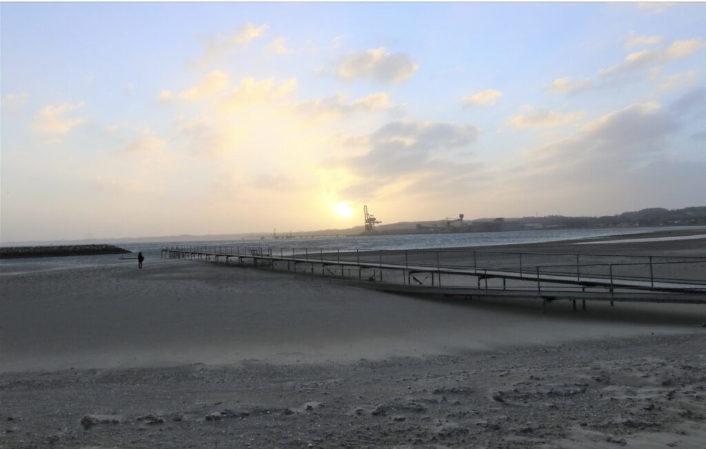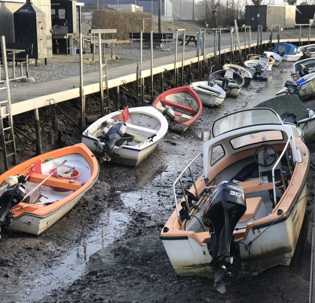 Stormen Malik blæste vandet ud af de østvendte fjorde i løbet af natten. Mandag formiddag manglede der op til 1,5 meter vand i eks., Aabenraa fjord. Foto: Erik Egvad Petersen - www.sydnyt.dk