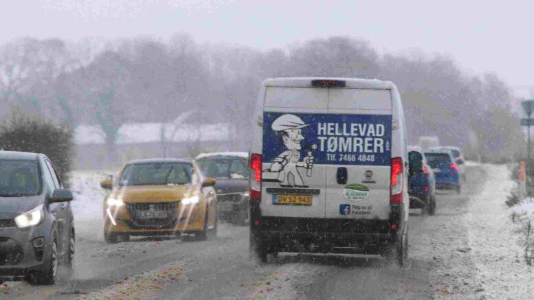 Det fyger med sne, og mange steder har busserne svært ved at komme frem. Det får betydning for dagens kørsel med skolebusser i Sønderborg Kommune.