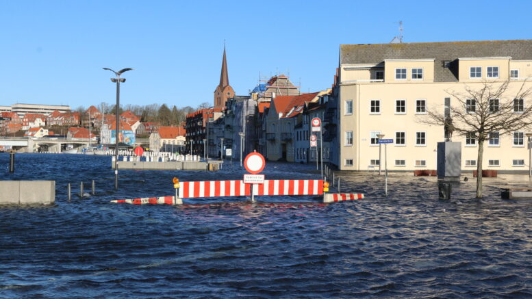 – Sdr. Havnegade i Sønderborg er spærret pga. højvande.