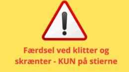 Advarsel om fare ved færdsel i og omkring klitter og skrænter