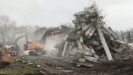 Entreprenørmaskinerne har travlt denne torsdag eftermiddag. Tørvejr er godt vejr når der skal nedbrydes. Den gamle skole på Vestergade er for en stor dels vedkommende…