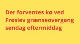 Søndag eftermiddag kan der opstå kø ved grænseovergangen Motorvej E45/Frøslev på grund af vejarbejde Søndag eftermiddag kan der opstå kø ved grænseovergangen Motorvej E45/Frøslev…