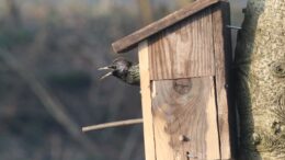 Det er ikke kun storkene, der er på vej til rederne. Også stærene bruger rigtig meget tid lige nu. Og en mere kræsen fugl, hvad…