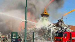 Stor skrotbrand på Kolding Havn – Havnens kran hjælper til med slukningen
