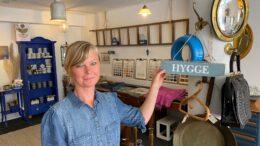 Lille Marie på gågaden i Tønder. Det er brugskunst, vintage og håndmalede skilte. – Jeg leverede mine håndmalede skilte til en af butikkerne i Tønder,…