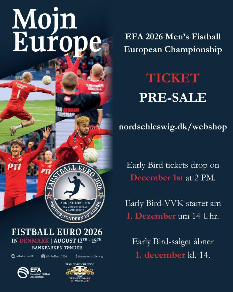 – Vi er motiverede og glæder os helt vildt til EFA 2026 Men’s Fistball European Championship i BankParken i Tønder.