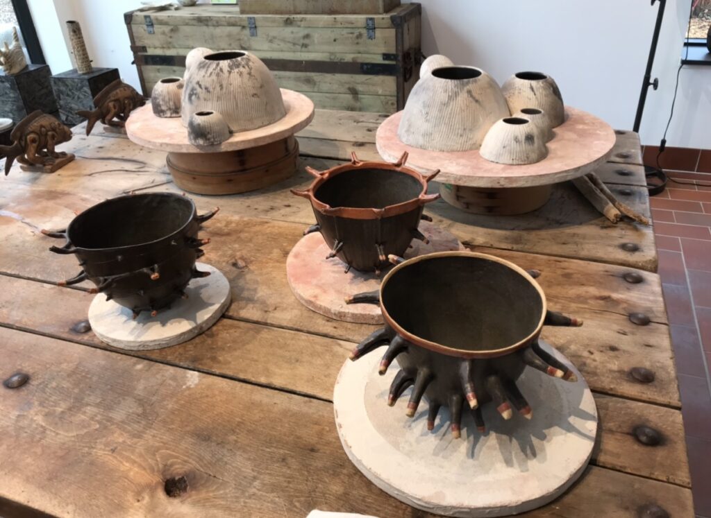 Det er keramiker Malene Hansen, der åbner sit nye atelier og galleri på Kongevej med en udstilling af egne keramiske værker og med malerier samt håndlavede knive af Dan Thuesen.