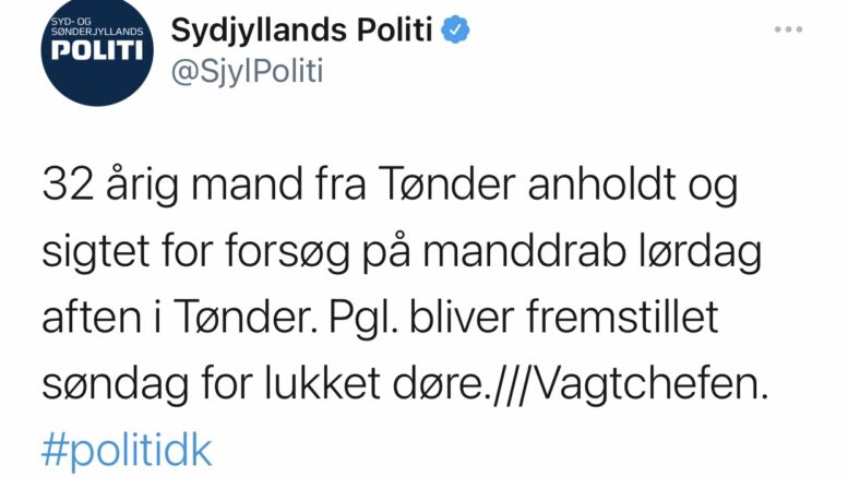 Lørdag aften anholdt politet en 32-årig i Tønder for forsøg på manddrab. den 32-årige er i retten pt.