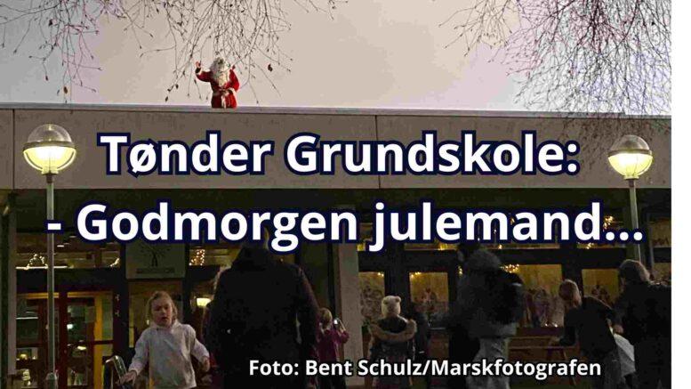 Mandag morgen blev elever på Tønder Grundskole mødt af julemanden. Foto: Bent Schulz/Marskfotografen