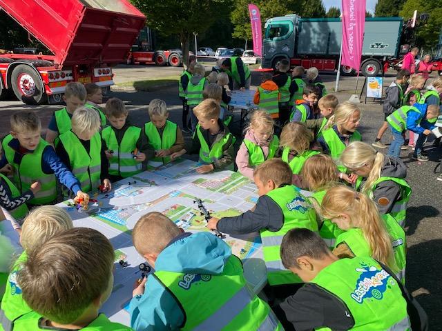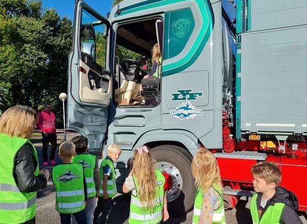 Skoleeleverne, der blev undervist i to hold, fik et kig ind i lastbilerne og trafikken.