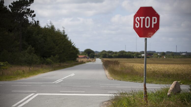 Mange stopper ikke, når de møder et Fuldt-stop-skilt. Det er livsfarligt. Over seneste fem år har Tønder Kommune registreret hele 23 uheld i kryds med fuldt-stop. Forleden uddelte Politiet klip i kørekortet for manglende stop.