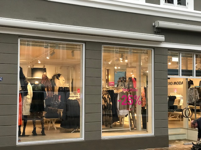 I går kunne man lige få sig et kig gennem ruderne på den nye Vero Moda-forretning på gågaden. De er ved at flytte. Bare et par meter mod øst. Her får de flere kvadratmeter. Hvis alt går vel med flytningen, åbner butikken igen på tirsdag.